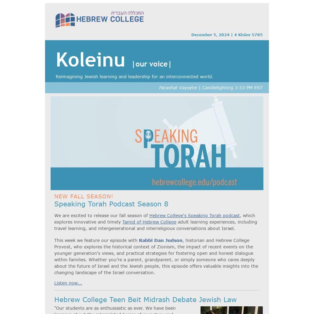 We are excited to release our fall season of Hebrew College's Speaking Torah podcast, which explores innovative and timely Tamid of Hebrew College adult learning experiences, including travel learning, and intergenerational and interreligious conversations about Israel.