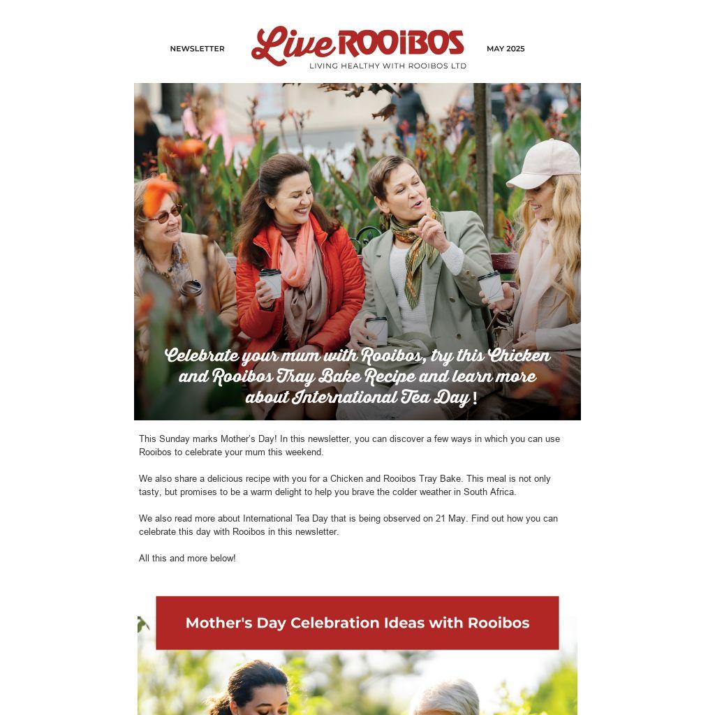 This Sunday marks Mother’s Day! In this newsletter, you can discover a few ways in which you can use Rooibos to celebrate your mum this weekend.