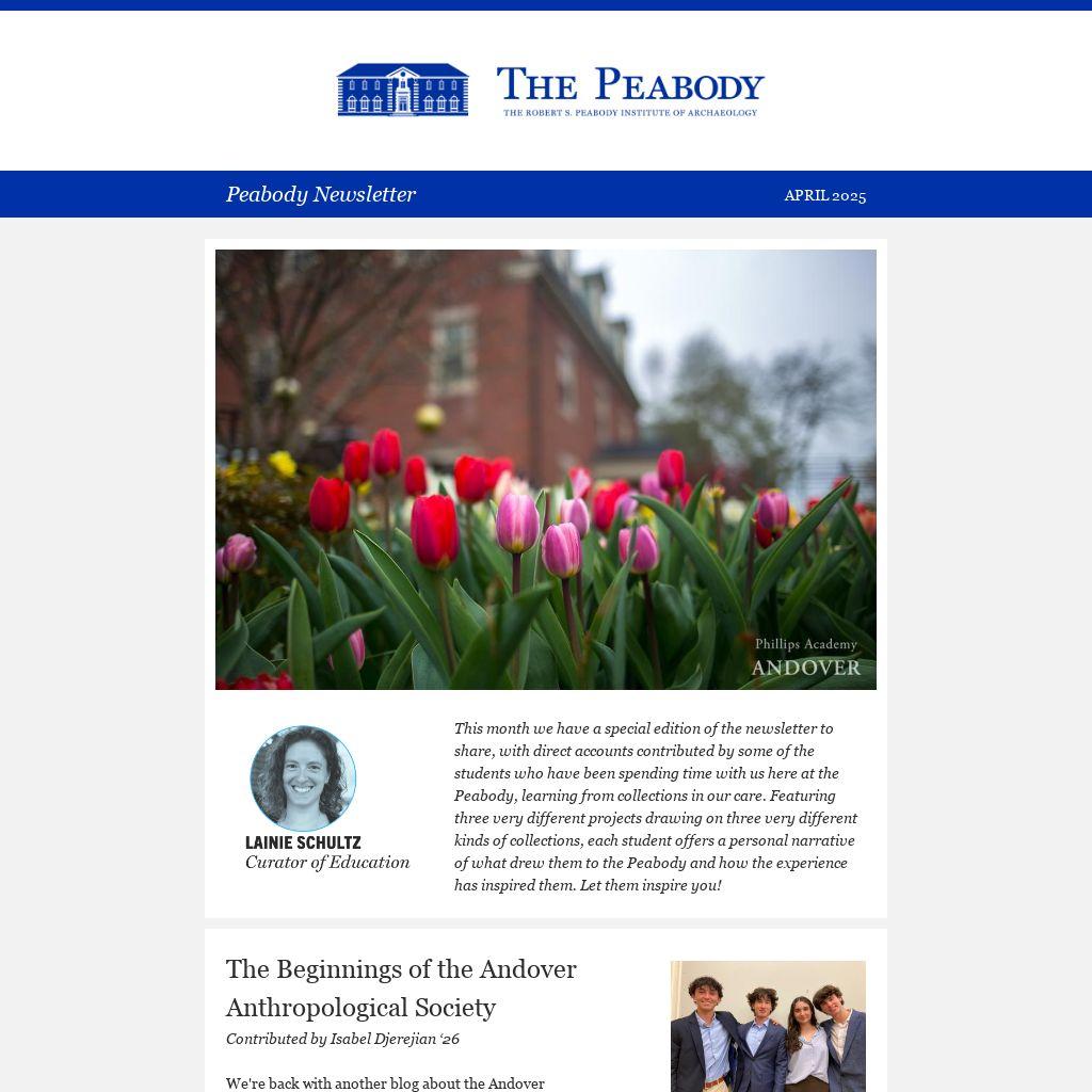 This month we have a special edition of the newsletter to share, with direct accounts contributed by some of the students who have been spending time with us here at the Peabody, learning from collections in our care. Featuring three very different projects drawing on three very different kinds of collections, each student offers a personal narrative of what drew them to the Peabody and how the experience has inspired them. Let them inspire you!