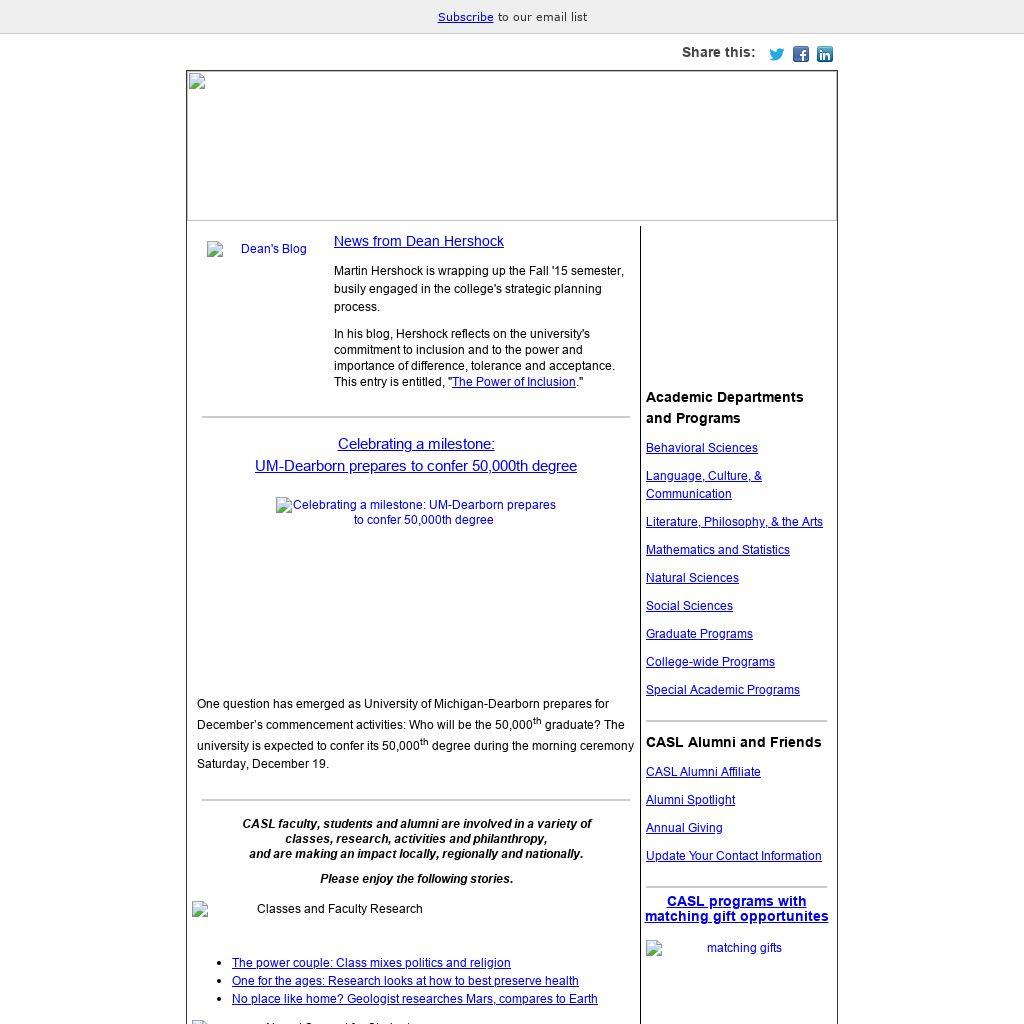 You recently received an email from Jack Sandeen at Stamats (jack.sandeen@stamats.com) with the subject line "University of Michigan-Dearborn-We Need Your Input" asking for your participation in a survey. We hope you are able to take a few minutes to complete this survey. We value your opinions and consider your feedback very important to our success. Thank you in advance for your participation in this project.