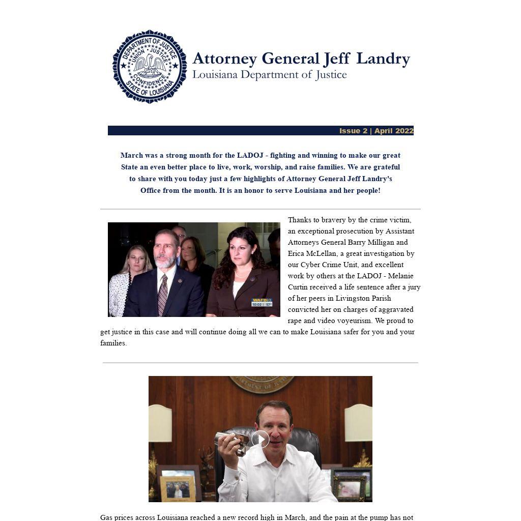 In late March, Attorney General Jeff Landry joined a 21-state lawsuit against the Biden Administration over the CDC mask mandate on planes, trains, buses, and public transit. These legal efforts led to the eventual elimination of the public transportation mask dictates. It is yet another win over the President that our office has achieved for Louisiana and for Liberty. We will continue defending your constitutional rights and fighting government overreach.