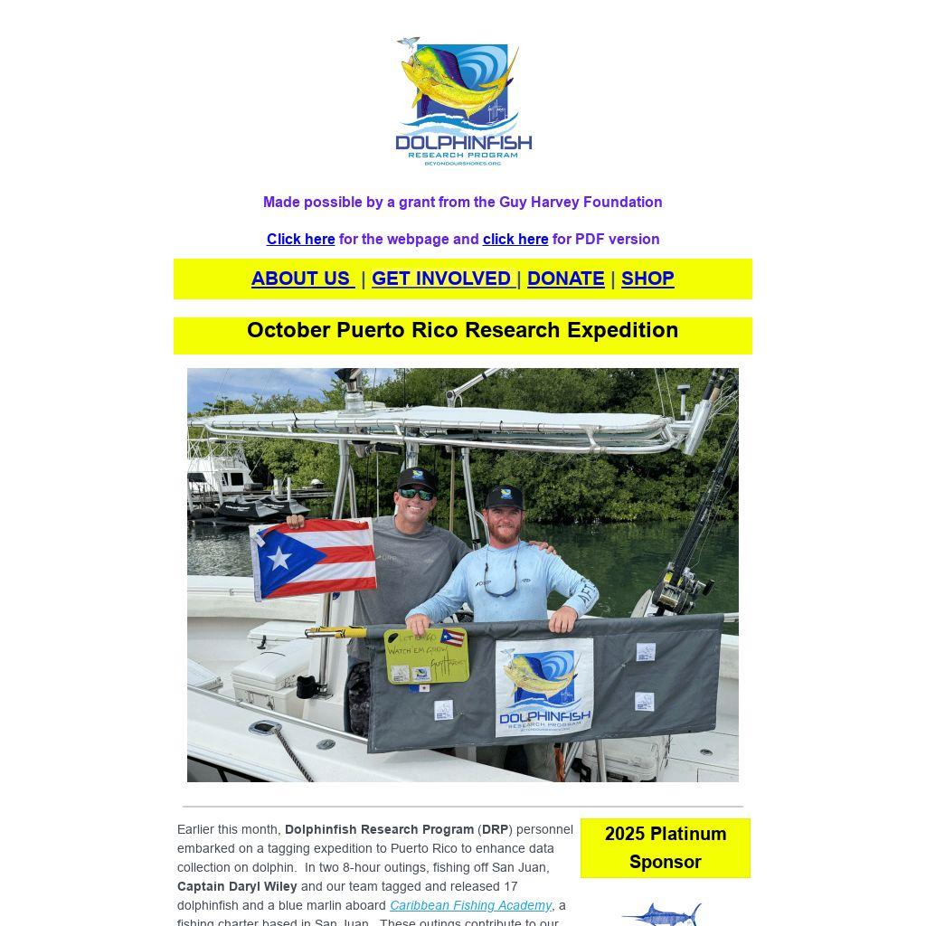 Next year marks the 25th anniversary of the Dolphinfish Research Program (DRP), and to celebrate this organizational milestone, we will print and distribute a special edition magazine to our supporters and participants. In this magazine, there are several articles from top program participants, research articles on key topics, as well as other relevant updates on the DRP's progress over the past 25 years. We are extremely proud to be sharing this important update with you and we hope you enjoy this special edition magazine!