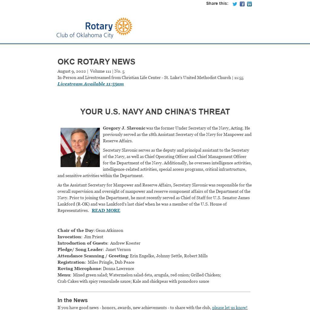 OKC Rotary NewsAugust 9, 2022 | Volume 111 | No. 5