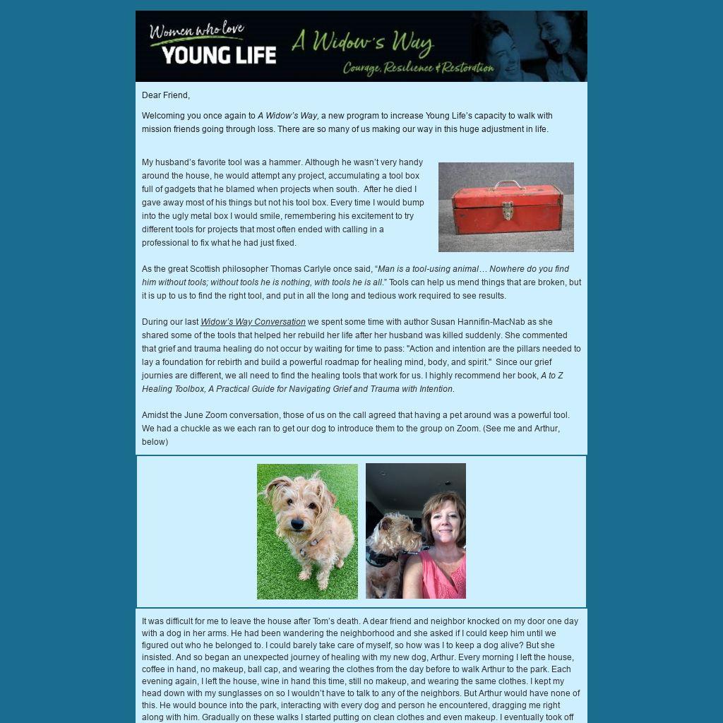 We each need a variety of tools in our healing toolbox, for different situations. Find what works for you and commit to the process. This grief work is the hardest work we will ever do, but we are not alone. We have each other and we have God working right along with us, not to fix, but to soothe our broken hearts.