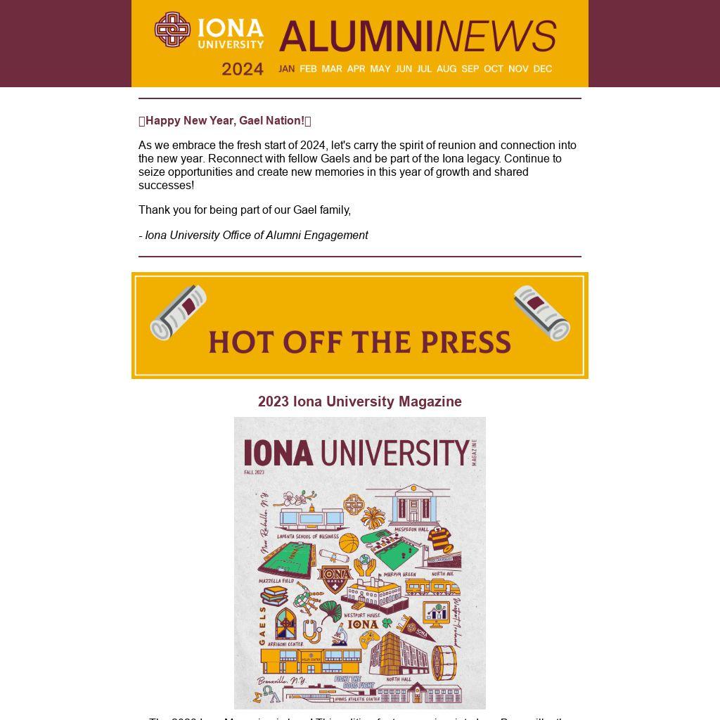 As we embrace the fresh start of 2024, let's carry the spirit of reunion and connection into the new year. Reconnect with fellow Gaels and be part of the Iona legacy. Continue to seize opportunities and create new memories in this year of growth and shared successes!