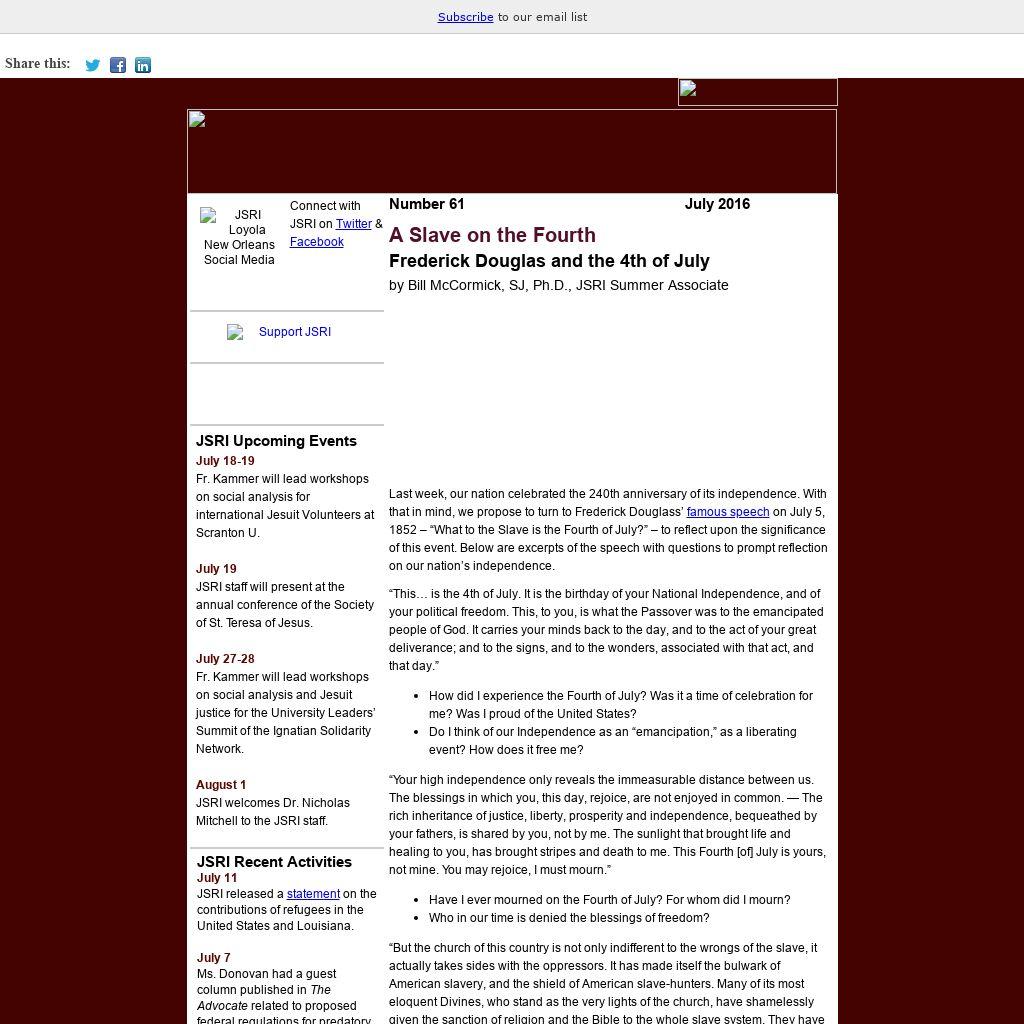 Frederick Douglas and the 4th of July by Bill McCormick, SJ, Ph.D., JSRI Summer Associate