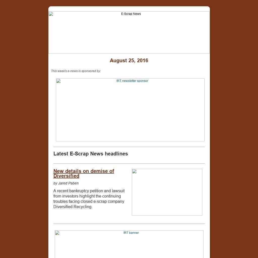 E-Scrap 2016 is taking place Sept. 20-22 at the Hyatt Regency New Orleans. Last year's conference welcomed 1,200 attendees from 40 countries, and the trade show featured 130 exhibitors. Head toe-scrapconference.comfor all the latest on attending, sponsoring and exhibiting.