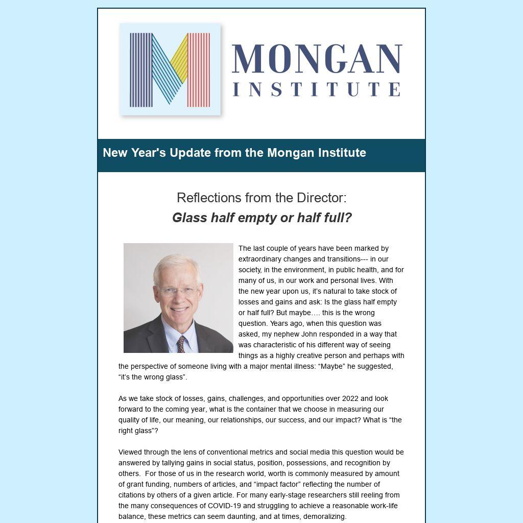 Finding the “right glass” is up to each of us—and continually evaluating “what” and not “how much” it contains, perhaps is the far better question. It is in this spirit and reflection that I recognize with gratitude our researchers, our trainees, our staff, and leaders at the Mongan Institute, as we collectively pursue our core mission to make a real difference in improving health, health care, and health equity. Sincere best wishes for a meaningful, fulfilling, and successful new year!