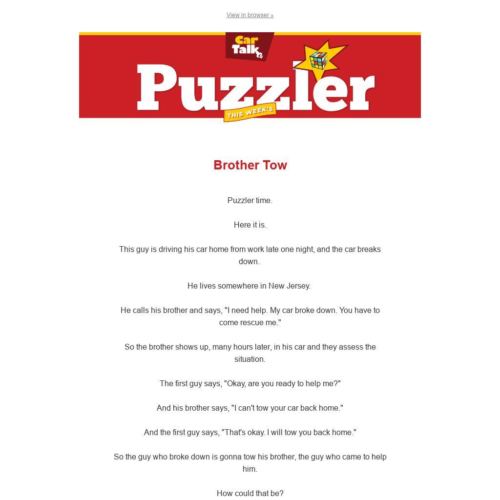 And his brother says, "I can't tow your car back home."