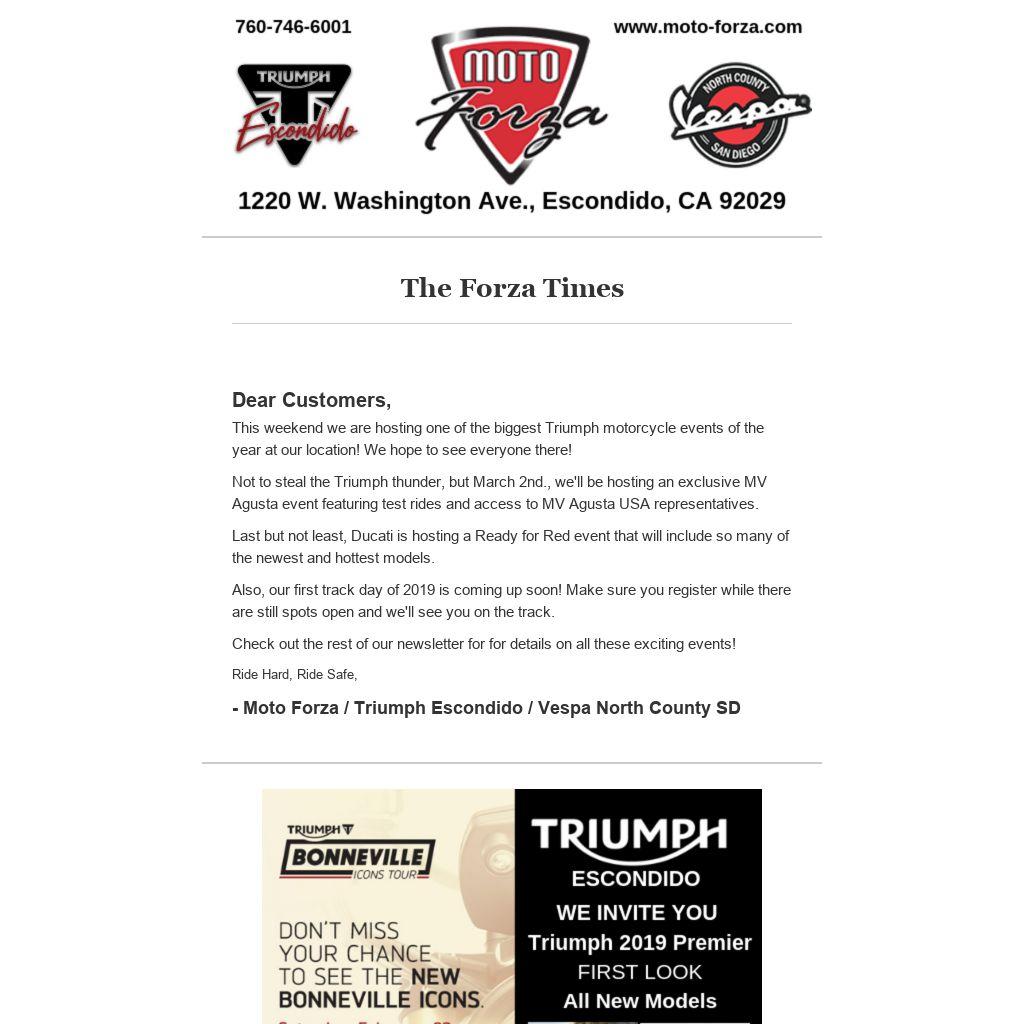 - Moto Forza / Triumph Escondido / Vespa North County SD