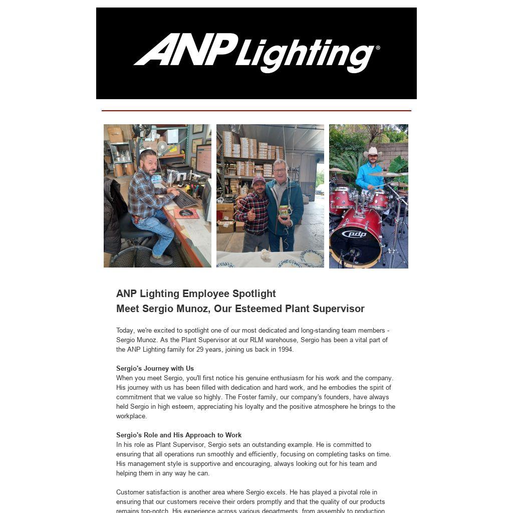 Today, we're excited to spotlight one of our most dedicated and long-standing team members - Sergio Munoz. As the Plant Supervisor at our RLM warehouse, Sergio has been a vital part of the ANP Lighting family for 29 years, joining us back in 1994.