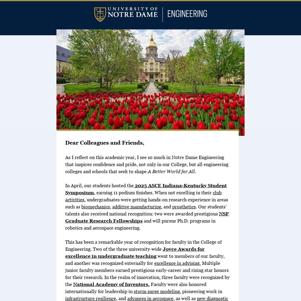 As I reflect on this academic year, I see so much in Notre Dame Engineering that inspires confidence and pride, not only in our College, but all engineering colleges and schools that seek to shape A Better World for All.