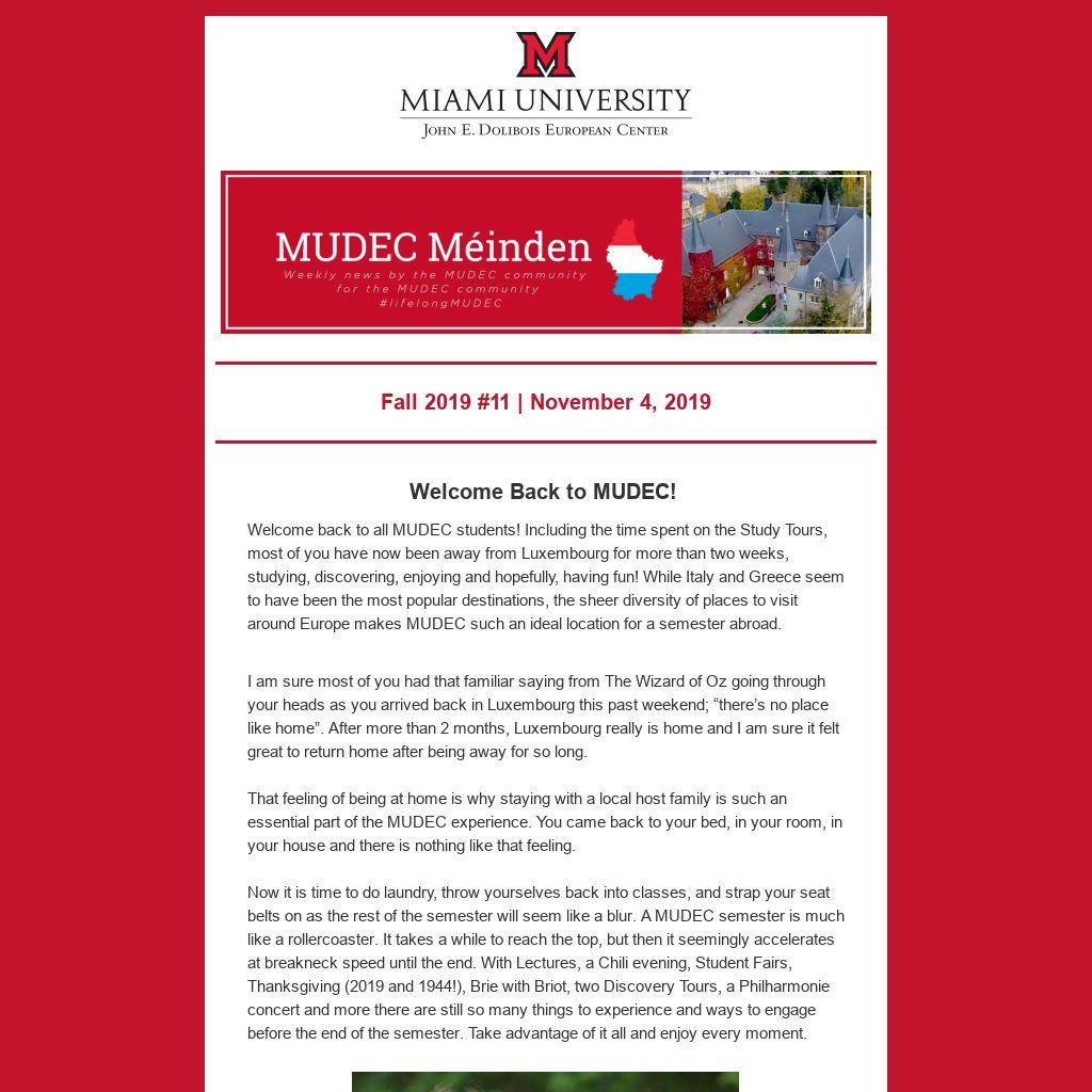 Uni Lux Study Abroad DayMUDEC will be repping Miami multiple times this week to prospective students from Luxembourg. This year, the University of Luxembourg is organizing its first Study Abroad Day on Wednesday afternoon for all students who are planning to do their exchange semester during the academic year 2020-2021. For students of the University of Luxembourg attending the fair is a must! It gives students the opportunity to find out about partner institutions, speak to students who have gone abroad and interact with exchange students from around the world. There will also be a series of info sessions and workshops throughout the fair. To learn more click below:
