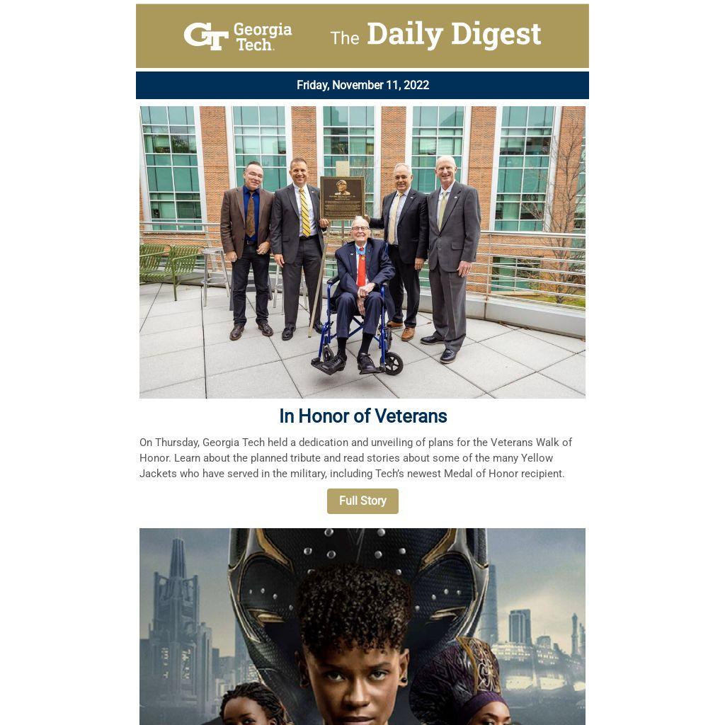 On Thursday, Georgia Tech held a dedication and unveiling of plans for the Veterans Walk of Honor. Learn about the planned tribute and read stories about some of the many Yellow Jackets who have served in the military, including Tech’s newest Medal of Honor recipient.