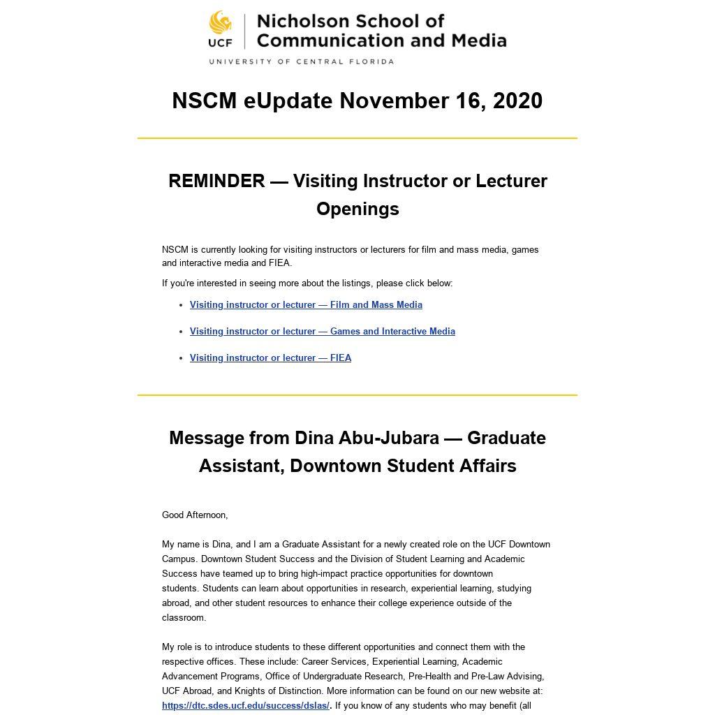 NSCM eUpdate November 16, 2020