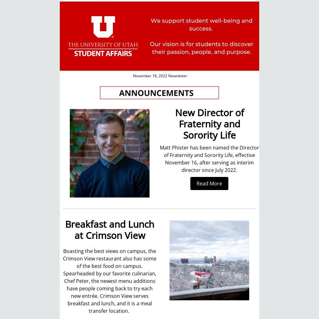 Boasting the best views on campus, the Crimson View restaurant also has some of the best food on campus. Spearheaded by our favorite culinarian, Chef Peter, the newest menu additions have people coming back to try each new entrée. Crimson View serves breakfast and lunch, and it is a meal transfer location.