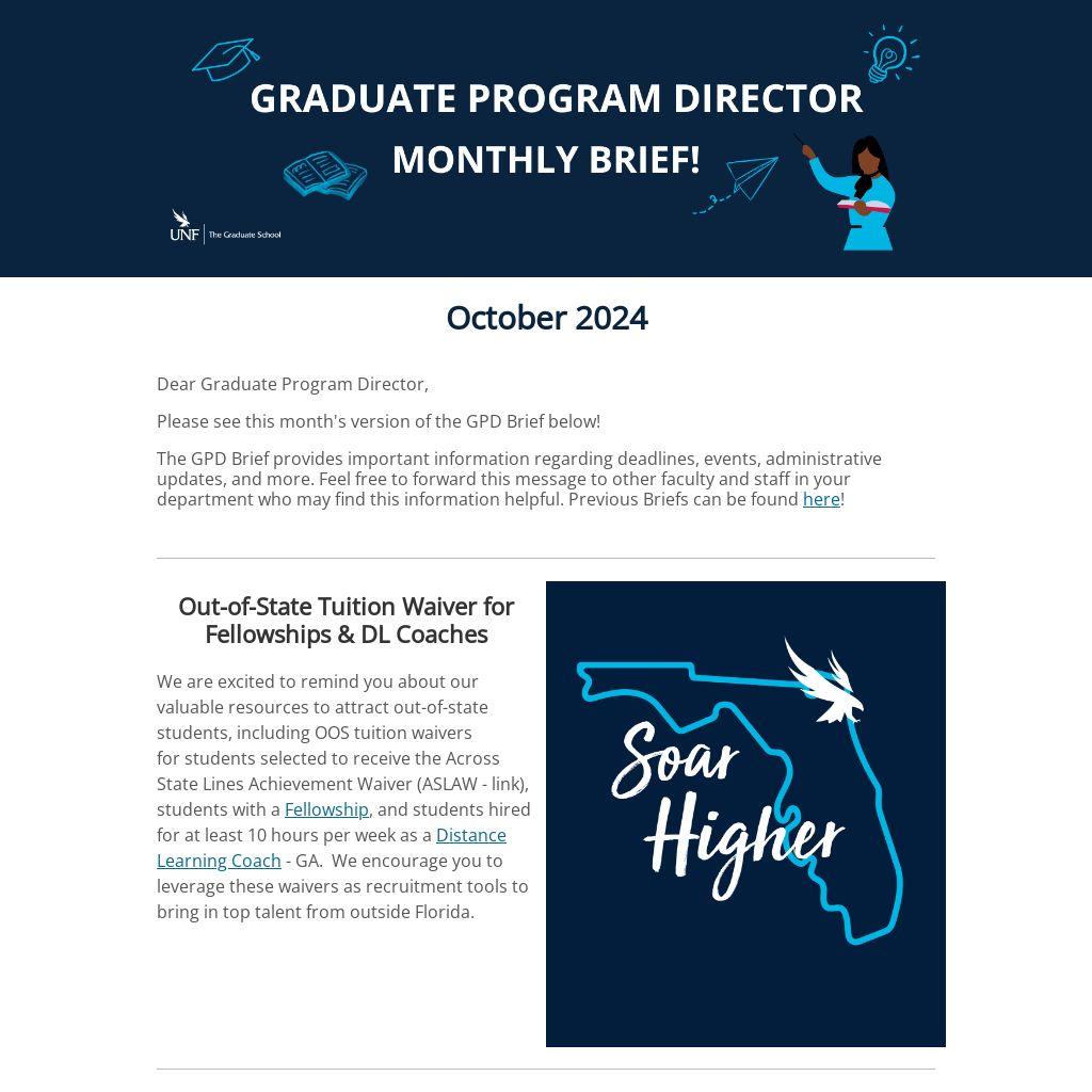 The GPD Brief provides important information regarding deadlines, events, administrative updates, and more. Feel free to forward this message to other faculty and staff in your department who may find this information helpful. Previous Briefs can be found here!