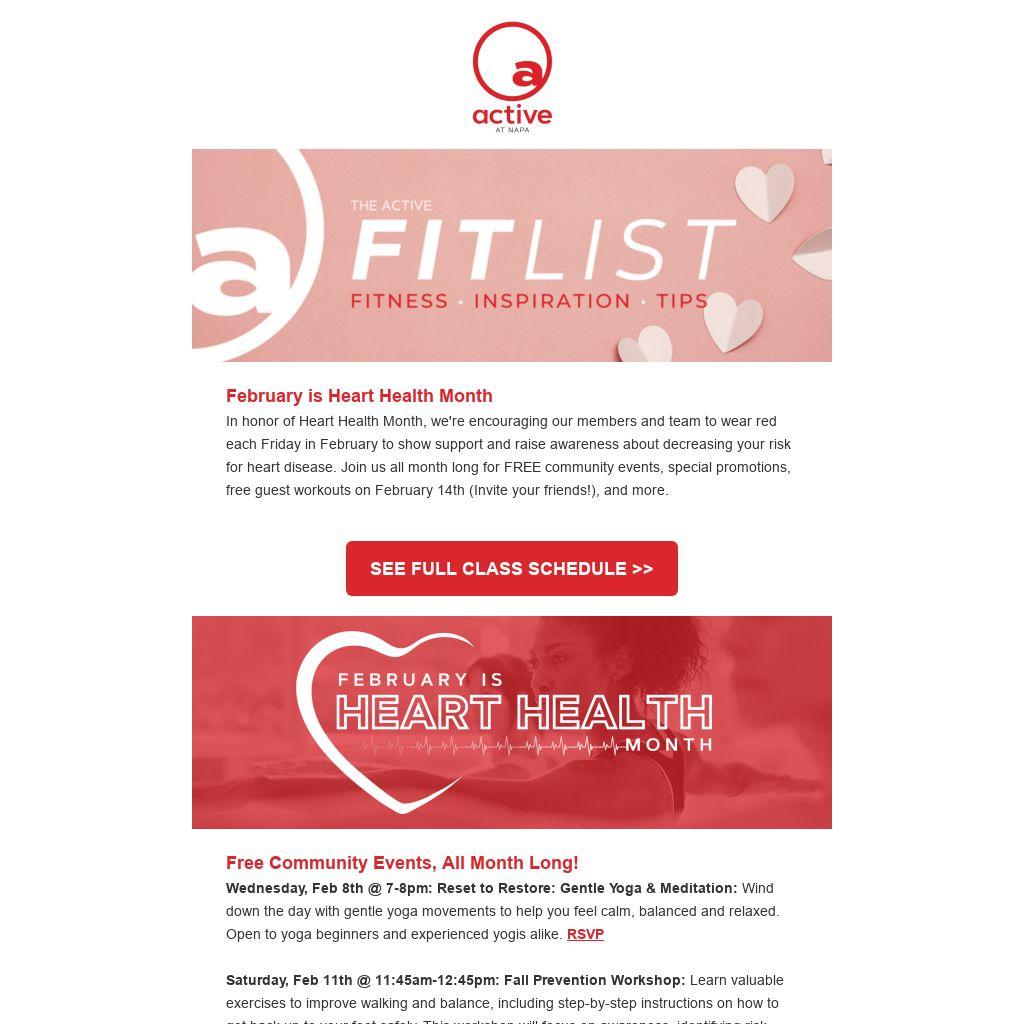 In honor of Heart Health Month, we're encouraging our members and team to wear red each Friday in February to show support and raise awareness about decreasing your risk for heart disease. Join us all month long for FREE community events, special promotions, free guest workouts on February 14th (Invite your friends!), and more.