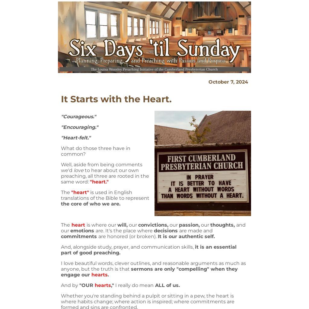 Whether you're standing behind a pulpit or sitting in a pew, the heart is where habits change; where action is inspired; where commitments are formed and sins are confronted.