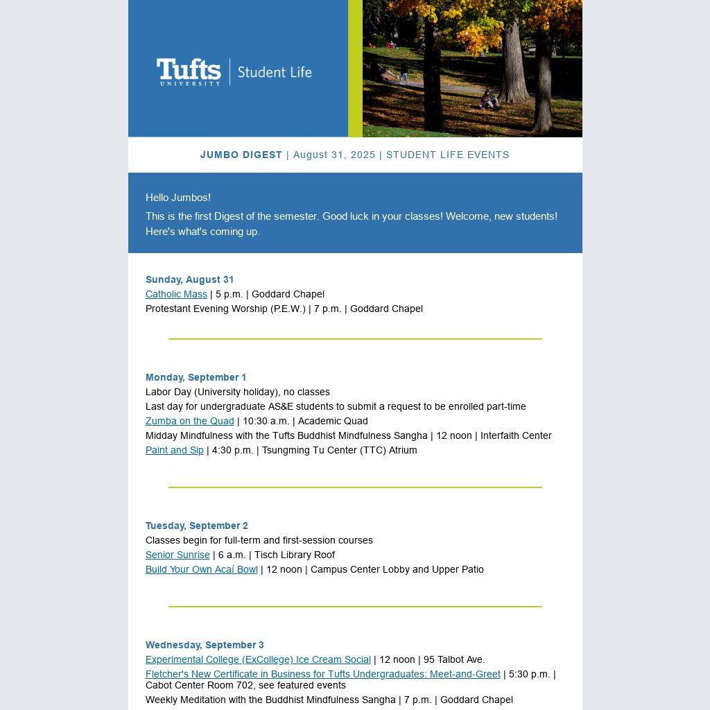 JUMBO DIGEST | August 31, 2025 | STUDENT LIFE EVENTS | |