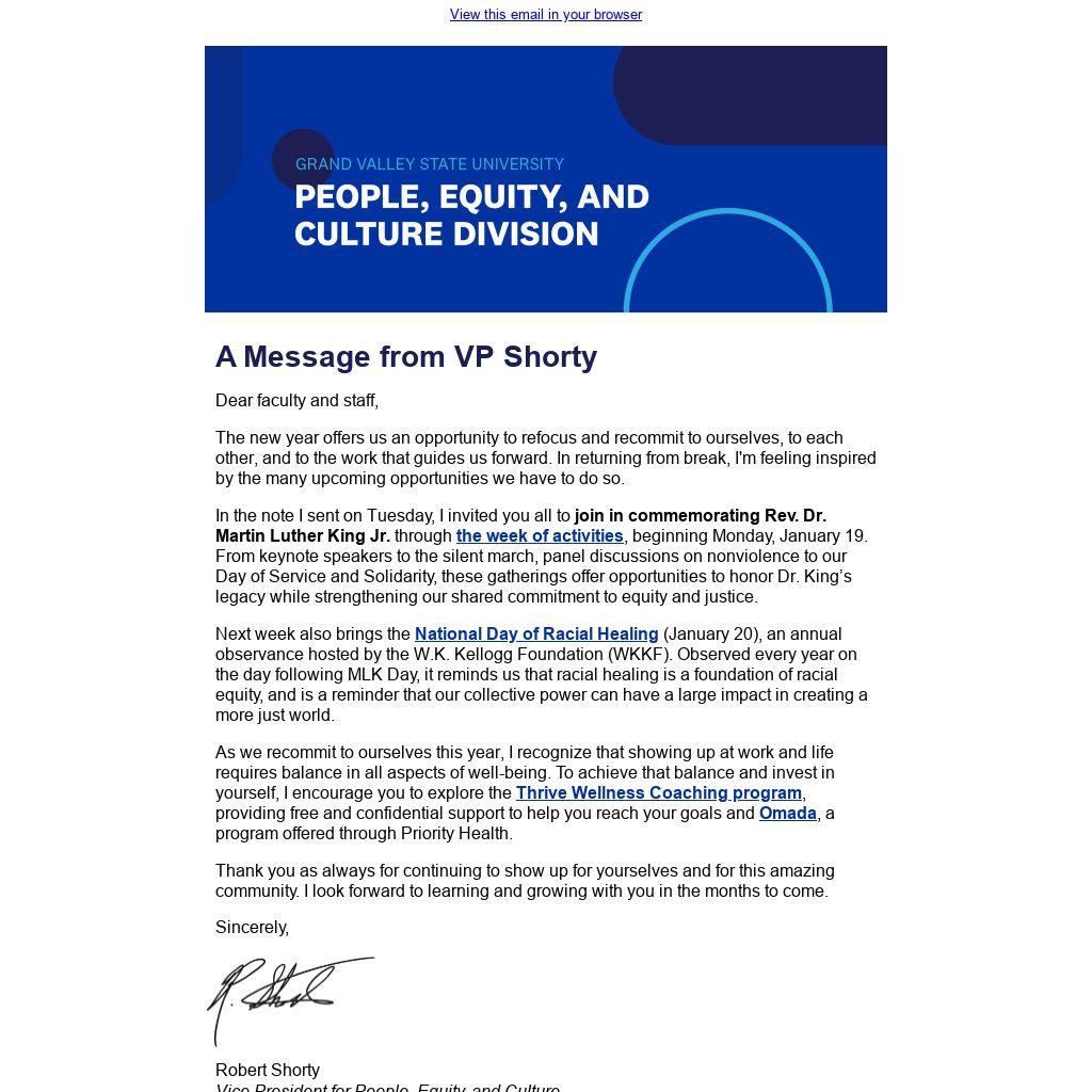 In the note I sent on Tuesday, I invited you all to join in commemorating Rev. Dr. Martin Luther King Jr. through the week of activities, beginning Monday, January 19. From keynote speakers to the silent march, panel discussions on nonviolence to our Day of Service and Solidarity, these gatherings offer opportunities to honor Dr. King’s legacy while strengthening our shared commitment to equity and justice.