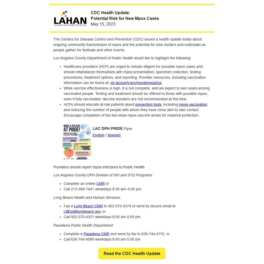 Providers should report mpox infections to Public Health