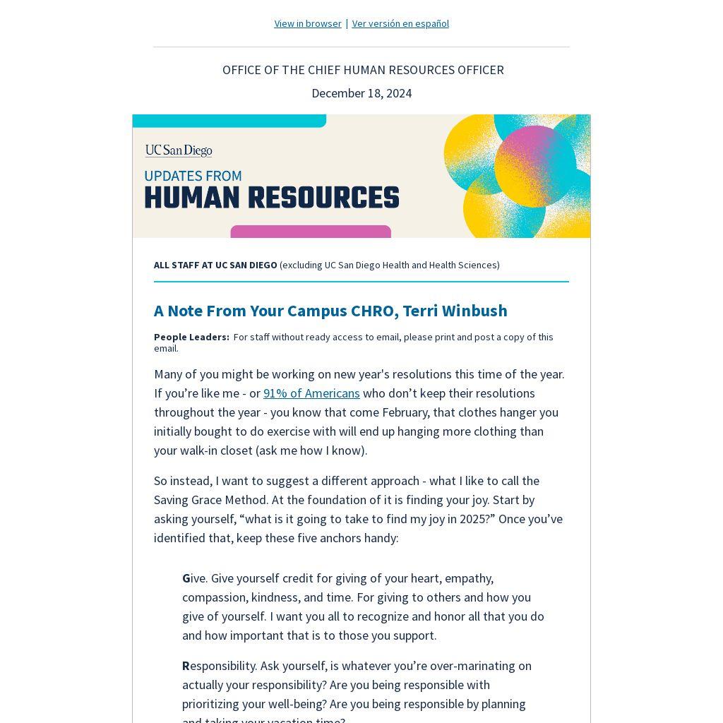 People Leaders, save the date for our upcoming People Leader Summit on Tuesday, Jan. 14, 2025 from 10 – 11:30 a.m. Register and submit questions in advance through Zoom. This session will focus on empowering People Leaders with strategic communication tools and strategies, with speakers including yours truly; Faculty and Staff Assistance Program Counselors; and more subject matter experts.