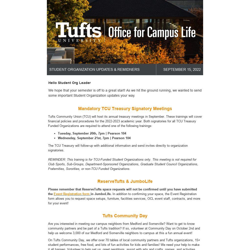 We hope that your semester is off to a great start! As we hit the ground running, we wanted to send some important Student Organization updates your way.