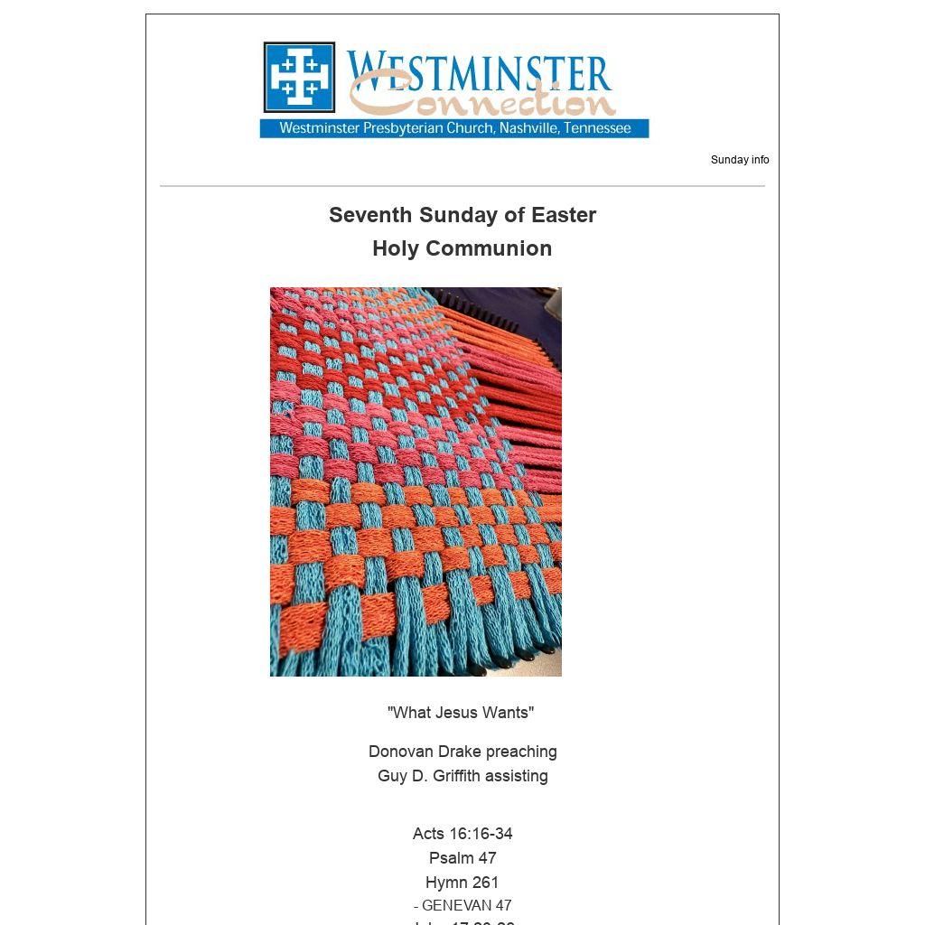 TO THE WESTMINSTER CHURCH FAMILY