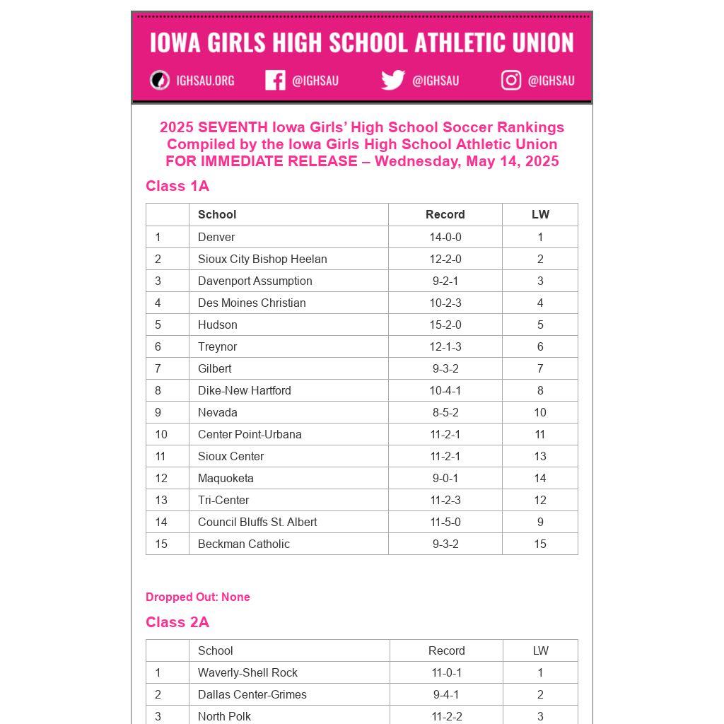 2025 SEVENTH Iowa Girls’ High School Soccer Rankings