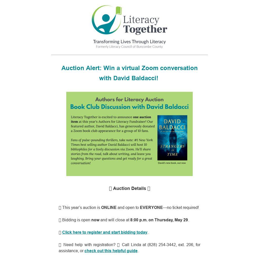 | Auction Alert: Win a virtual Zoom conversation with David Baldacci!
