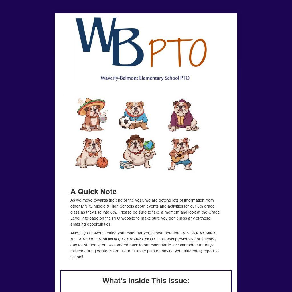 As we move towards the end of the year, we are getting lots of information from other MNPS Middle & High Schools about events and activities for our 5th grade class as they rise into 6th. Please be sure to take a moment and look at the Grade Level Info page on the PTO website to make sure you don't miss any of these amazing opportunities.