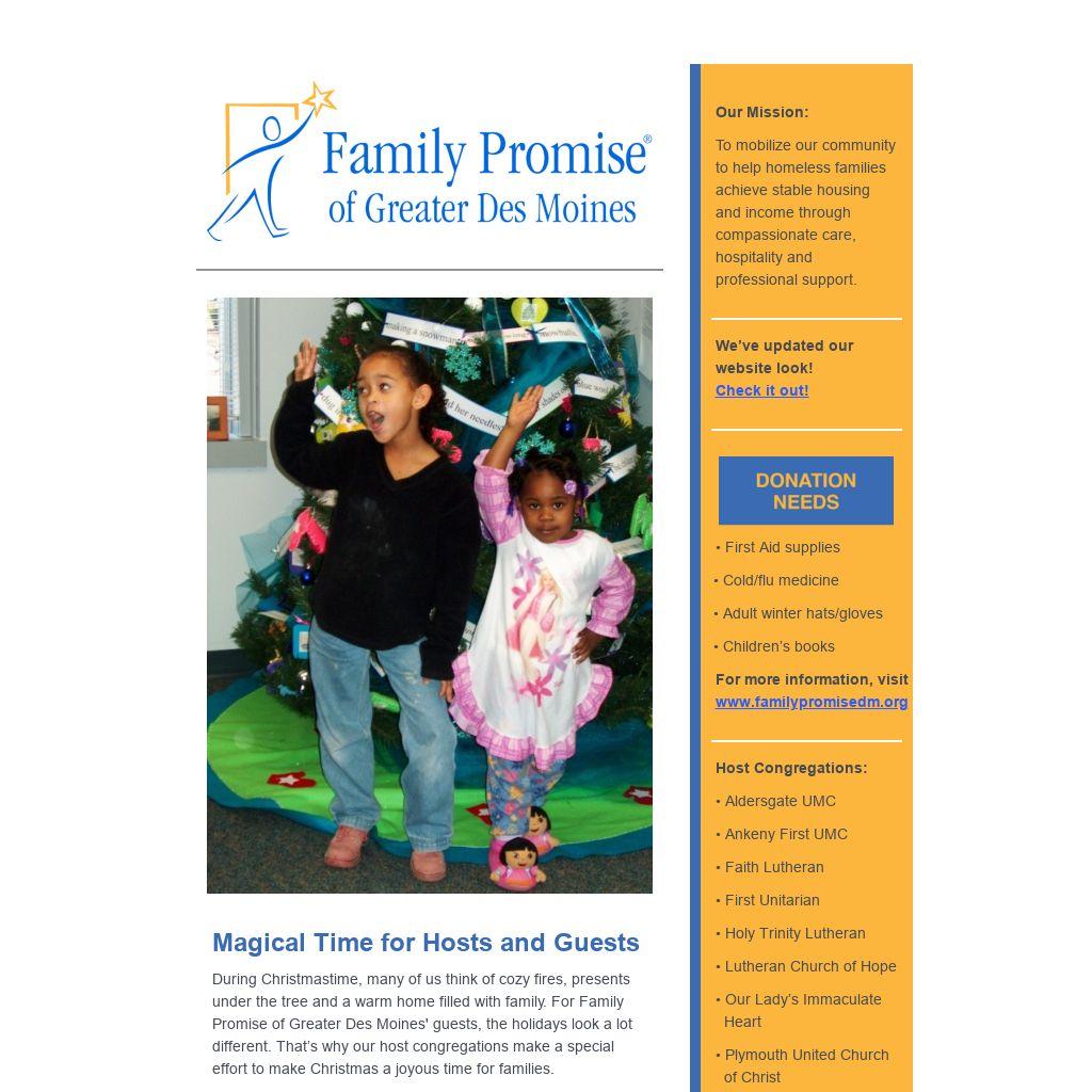 During Christmastime, many of us think of cozy fires, presents under the tree and a warm home filled with family. For Family Promise of Greater Des Moines' guests, the holidays look a lot different. That’s why our host congregations make a special effort to make Christmas a joyous time for families.
