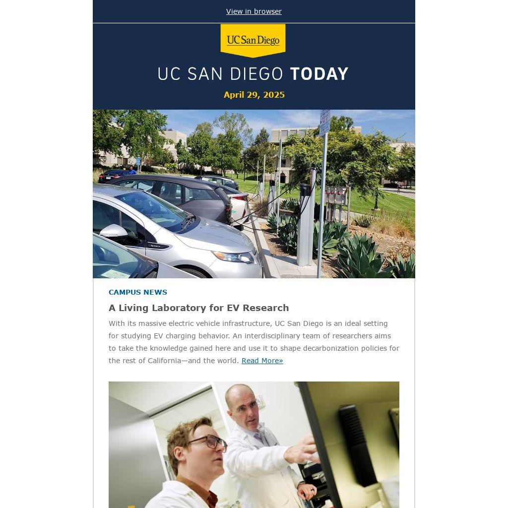 With its massive electric vehicle infrastructure, UC San Diego is an ideal setting for studying EV charging behavior. An interdisciplinary team of researchers aims to take the knowledge gained here and use it to shape decarbonization policies for the rest of California—and the world. Read More»