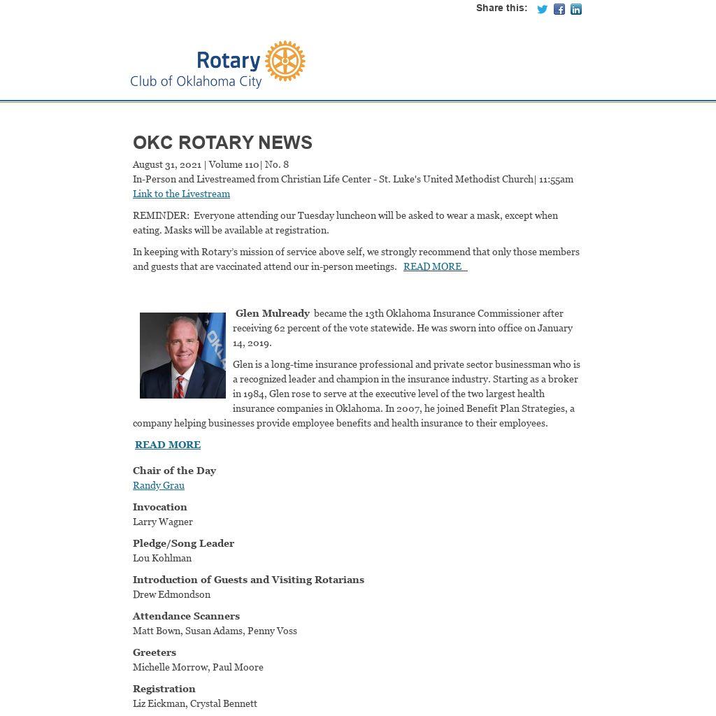 OKC Rotary NewsAugust 31, 2021 | Volume 110| No. 8
