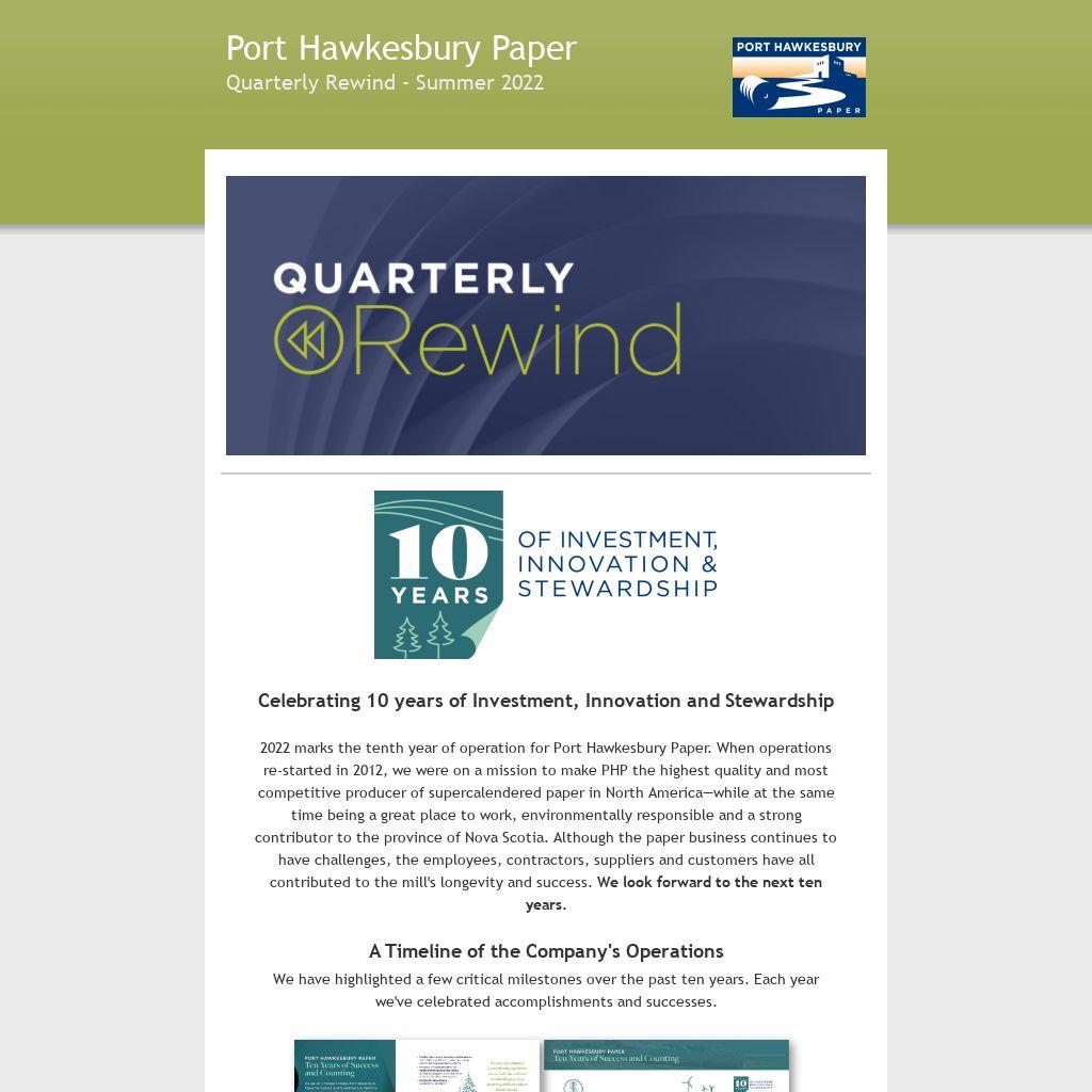Some of the report highlights include the following achievements: 4% reduction in electricity use per tonne of paper produced, 6% reduction in net steam per tonne of paper produced, 5% reduction in effluent per tonne of paper produced and 25% reduction in wet and 14% reduction in dry solid waste per ton of paper produced.