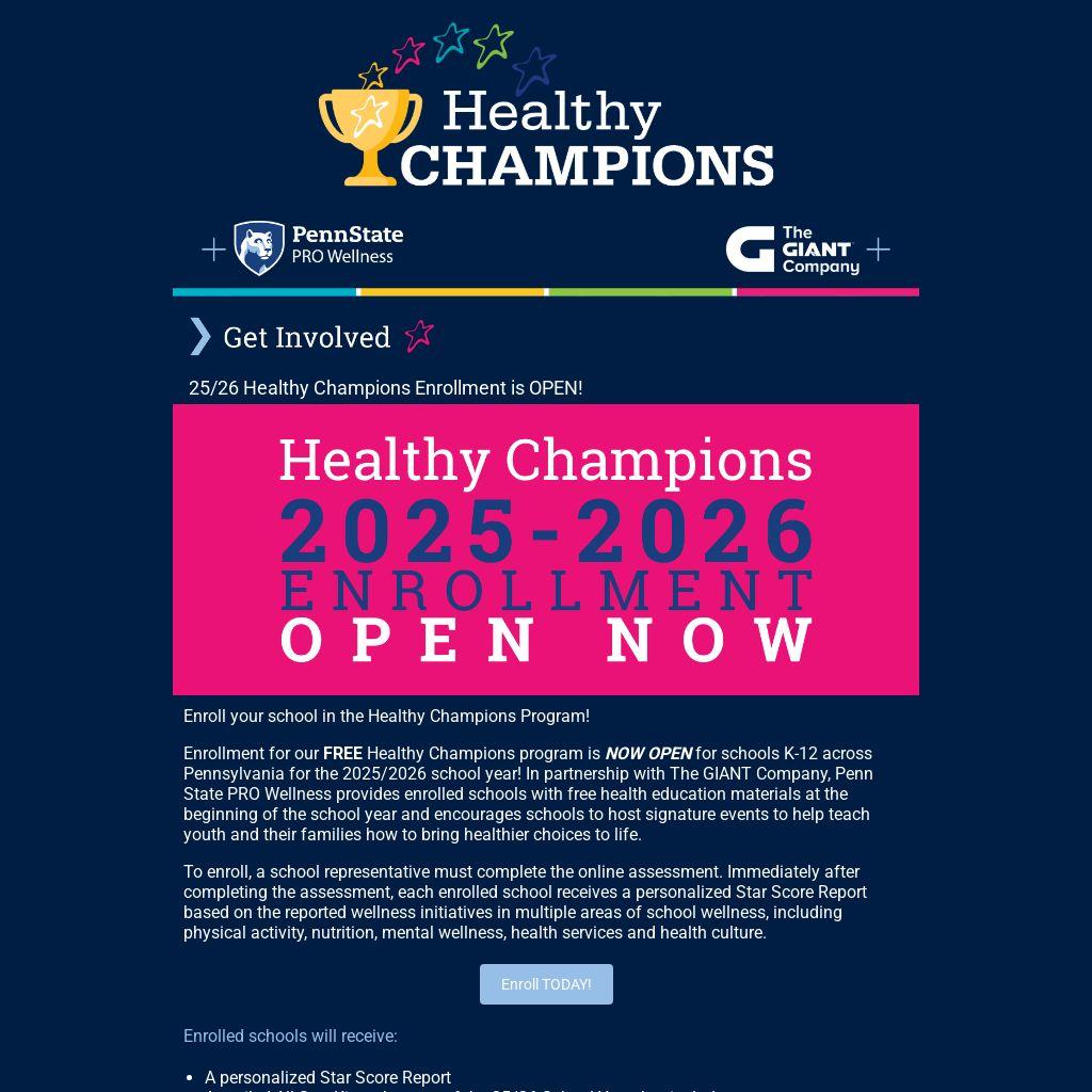 25/26 Healthy Champions Enrollment is OPEN! |