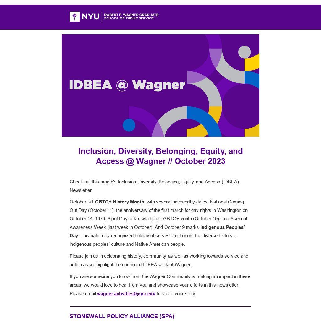 Please join us in celebrating history, community, as well as working towards service and action as we highlight the continued IDBEA work at Wagner.