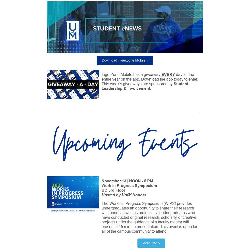 | TigerZone Mobile has a giveaway EVERY day for the entire year on the app. Download the app today to enter. This week's giveaways are sponsored by Student Leadership & Involvement.