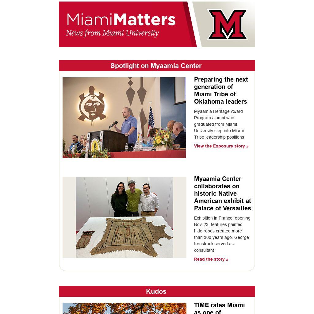 Kudos: TIME ranking; Graduate mentors; MUSO; Photos. Myaamia Center focus