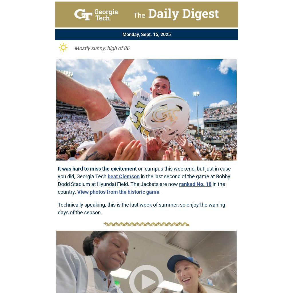 It was hard to miss the excitement on campus this weekend, but just in case you did, Georgia Tech beat Clemson in the last second of the game at Bobby Dodd Stadium at Hyundai Field. The Jackets are now ranked No. 18 in the country. View photos from the historic game.
