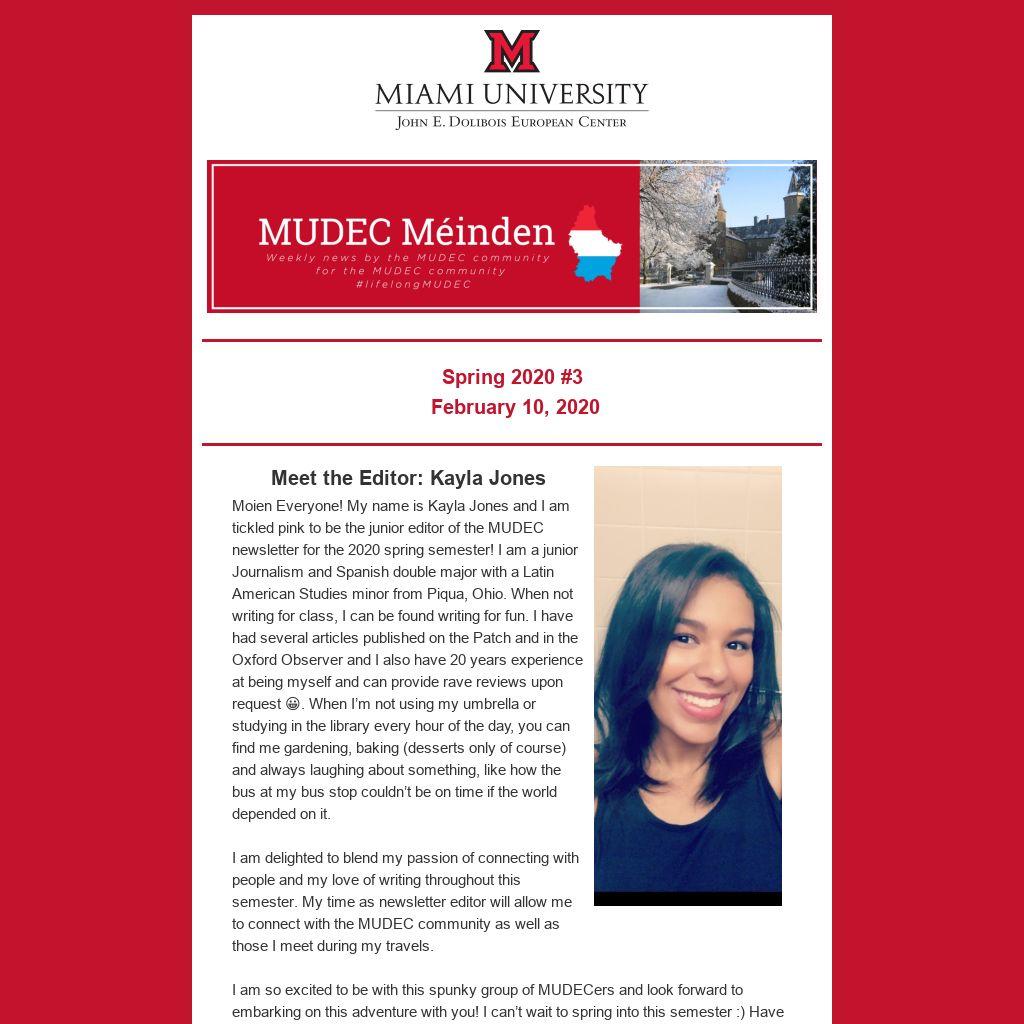 I really enjoy being involved with all of the events. I enjoy helping organize and really helping with whatever is needed. I also have a lot of fun meeting people outside of MUDEC and representing the student body being an ambassador to both Miami University and the John Dolibois European Center.
