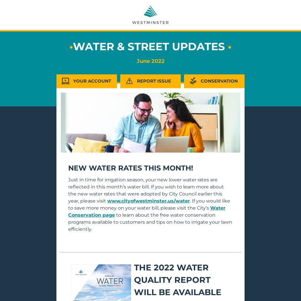 www.cityofwestminster.us/water. If you would like to save more money on your water bill, please visit the City’s