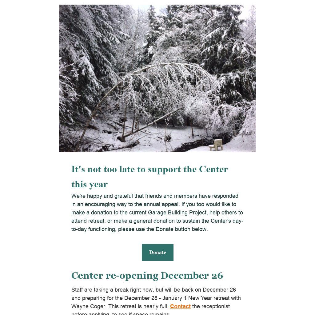 We're happy and grateful that friends and members have responded in an encouraging way to the annual appeal. If you too would like to make a donation to the current Garage Building Project, help others to attend retreat, or make a general donation to sustain the Center's day-to-day functioning, please use the Donate button below.