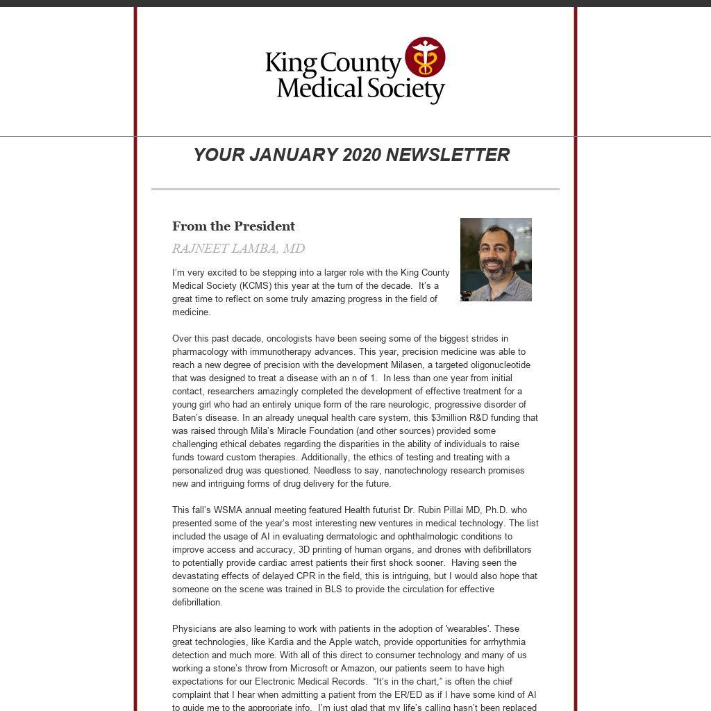 I’m very excited to be stepping into a larger role with the King County Medical Society (KCMS) this year at the turn of the decade. It’s a great time to reflect on some truly amazing progress in the field of medicine.