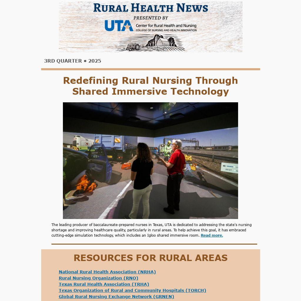 UTA's Center for Rural Health and Nursing is actively working to advance rural healthcare training by equipping nursing students and professionals with the skills, technologies, and experiences needed to serve underserved communities more effectively. A range of strategic initiatives are actively advancing rural healthcare while simultaneously providing essential training, such as: