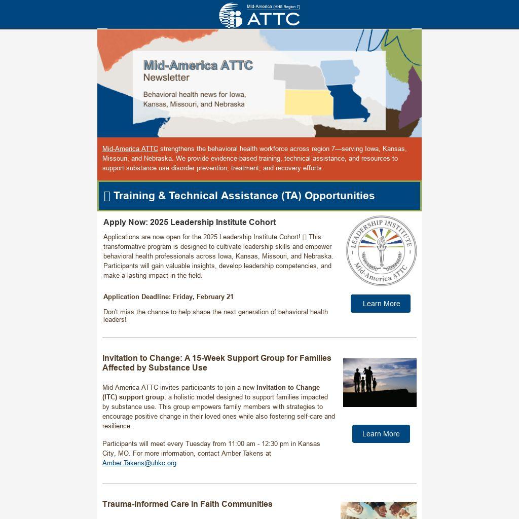Thank you for being part of the Mid-America ATTC community! Stay connected for more updates and opportunities to engage in strengthening the behavioral health workforce in region 7.