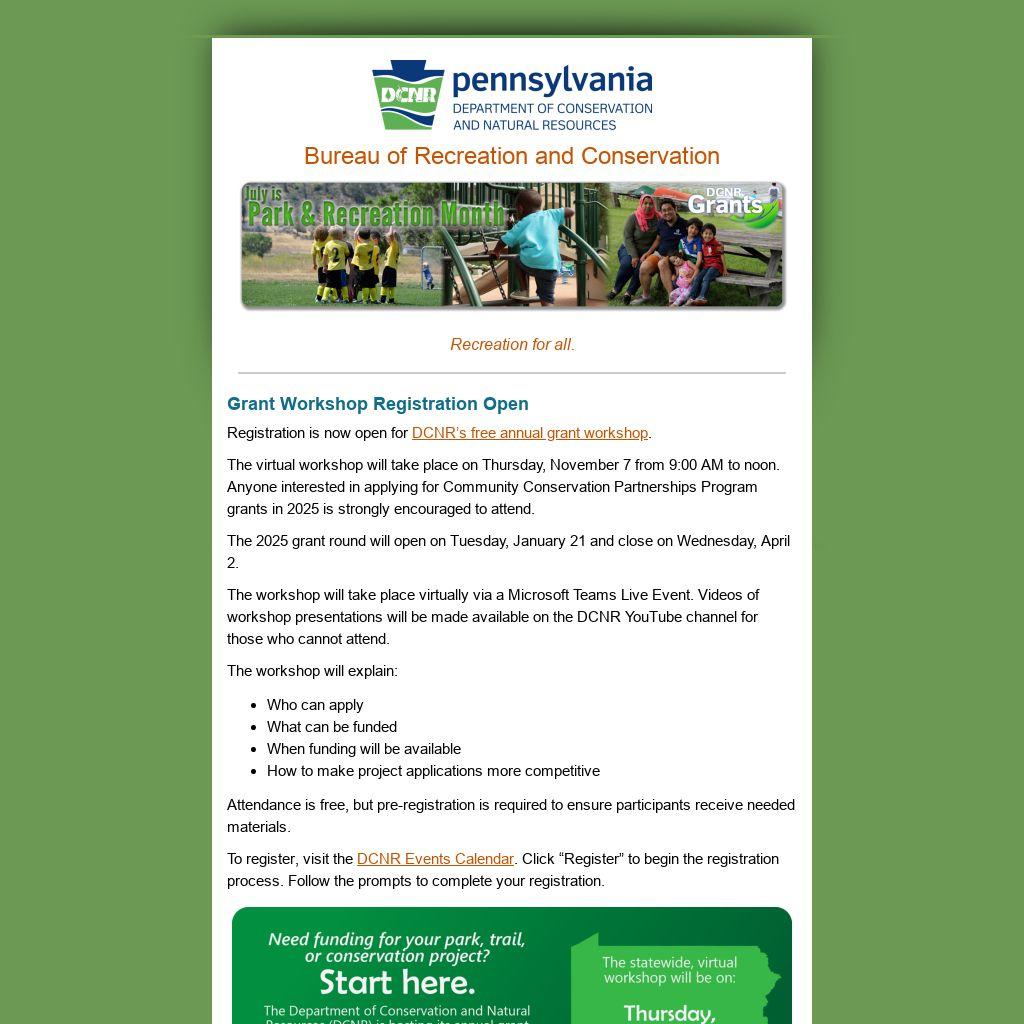 Registration is now open for DCNR’s free annual grant workshop.