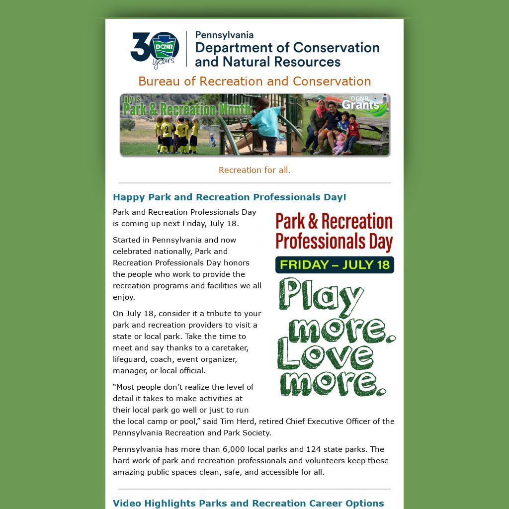 Started in Pennsylvania and now celebrated nationally, Park and Recreation Professionals Day honors the people who work to provide the recreation programs and facilities we all enjoy.