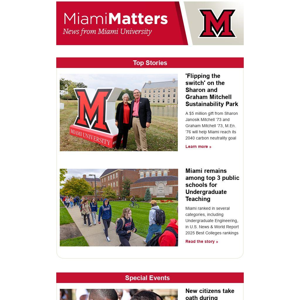 $5M gift for the Sharon and Graham Mitchell Sustainability Park; Rankings
